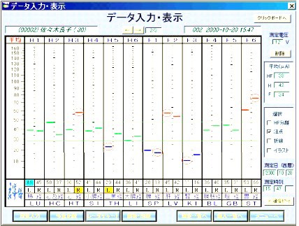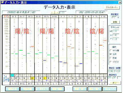表示されたされた良導絡チャートチャートに基づき気質を決定した後に再度、四肢動態テスト(ウィークポイントチェック)、その他動態テストによって施術手順を見出し手順を追って身体の症状を緩和します。